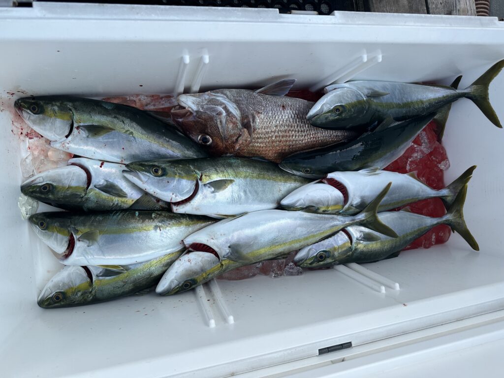 ハマチよく釣れました魚〆に走り回り..