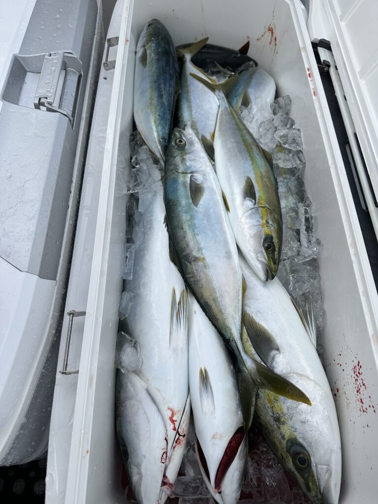 朝から喧嘩ブリにワラサ後半はハマチ 明日は空き空きです